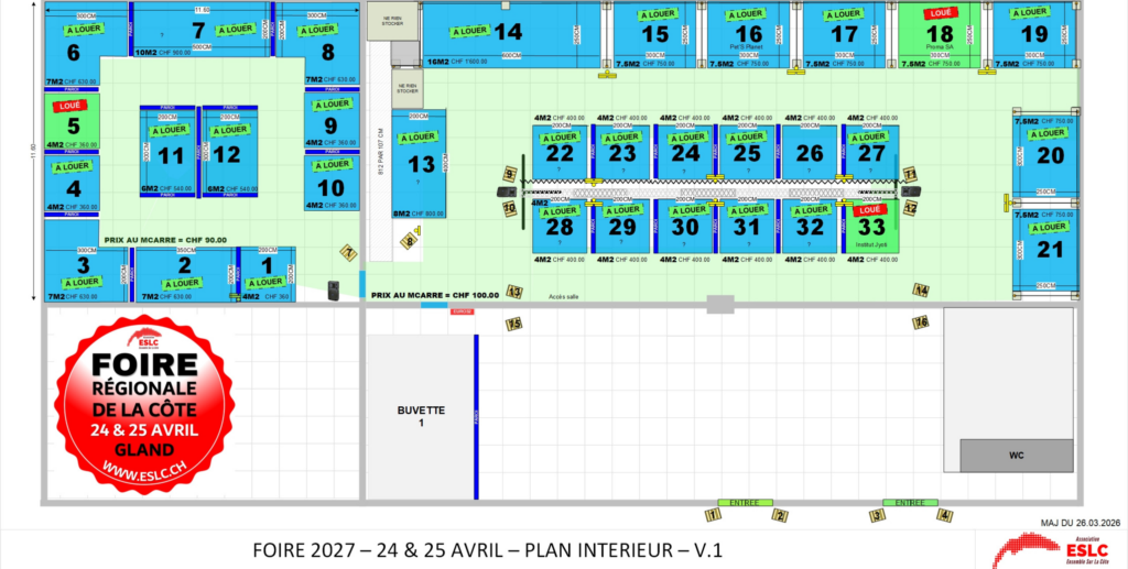 Dimanche 25 avril 2027 dès 18h00 – Merci de ne pas démonter avant par respect pour les autres exposants. Sur demande à l’inscription, vous pouvez venir démonter votre stand le lundi 26 avril 2027 de 09h00 à 12h00.